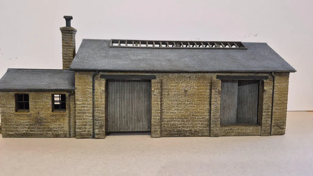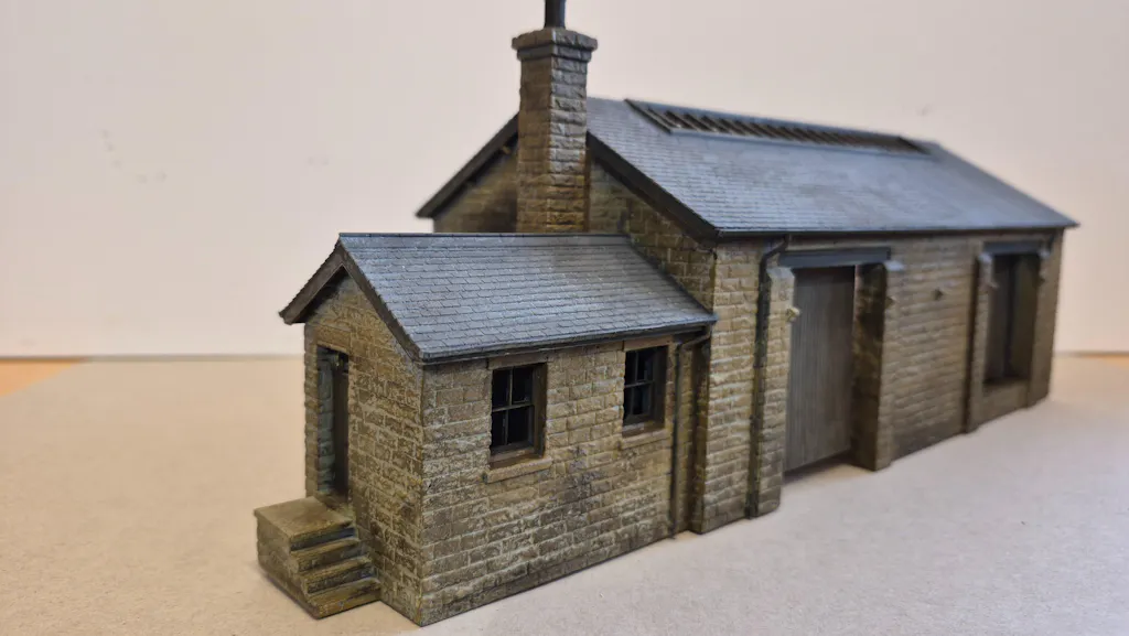 A stone built goods shed with brick interior, based on a midland region example which still exists in a semi-original condition at Millers Dale station, in the Peak District, on the now cycle route the "Monsal Trail"