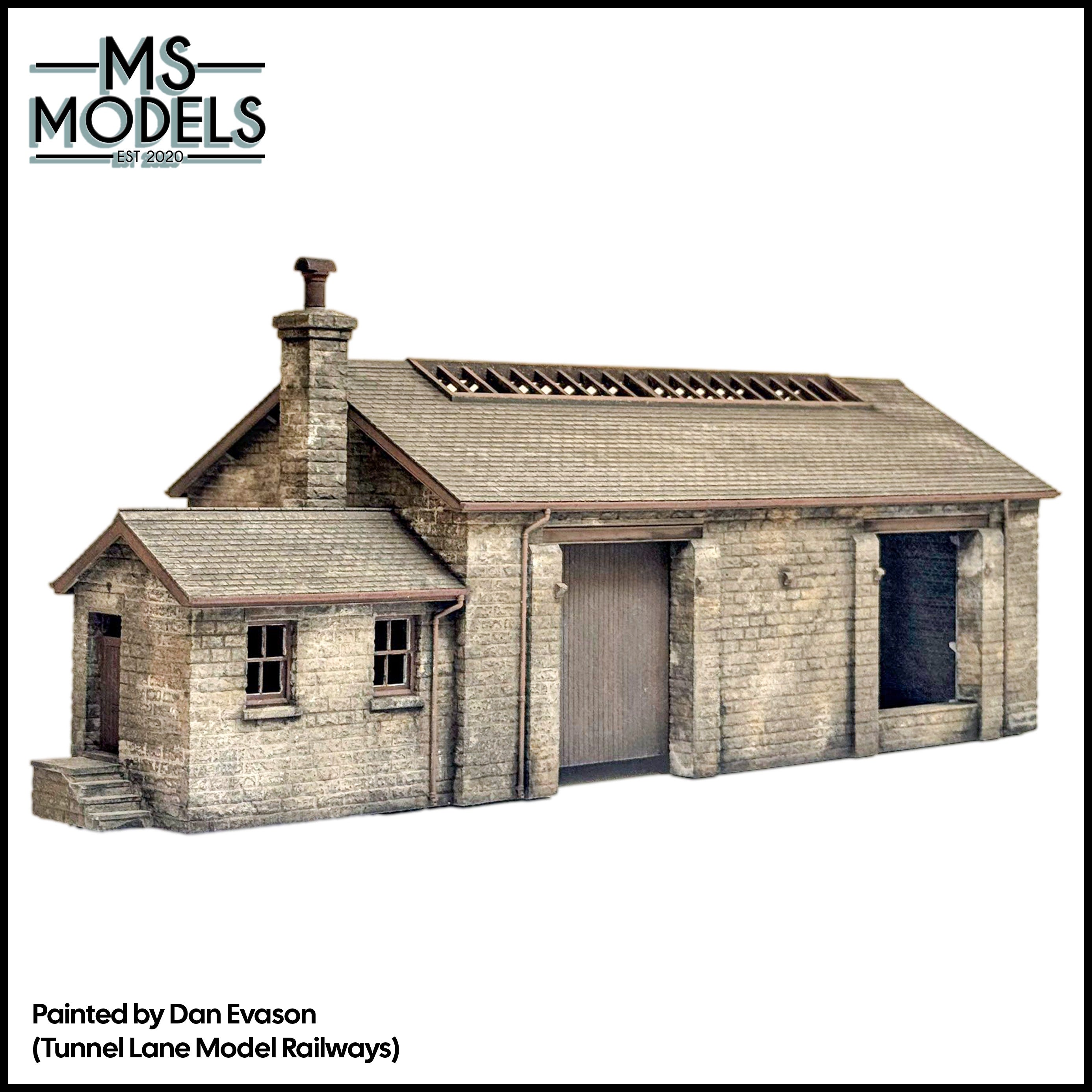 A stone built goods shed with brick interior, based on a midland region example which still exists in a semi-original condition at Millers Dale station, in the Peak District, on the now cycle route the "Monsal Trail"