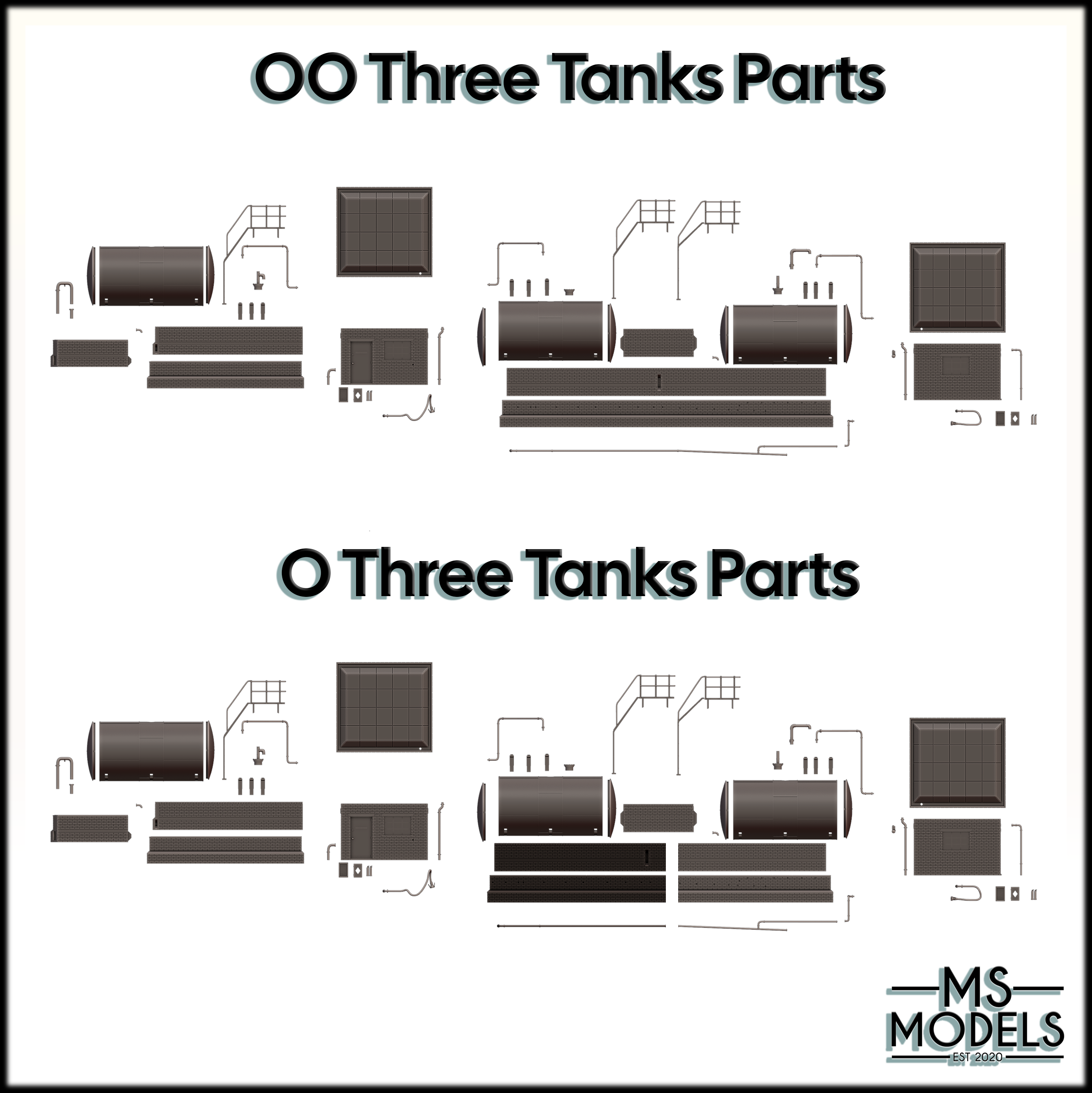 Fuel depot based on the 3 tanks which existed near Buxton Station, Derbyshire. Available as a two or three tank set.